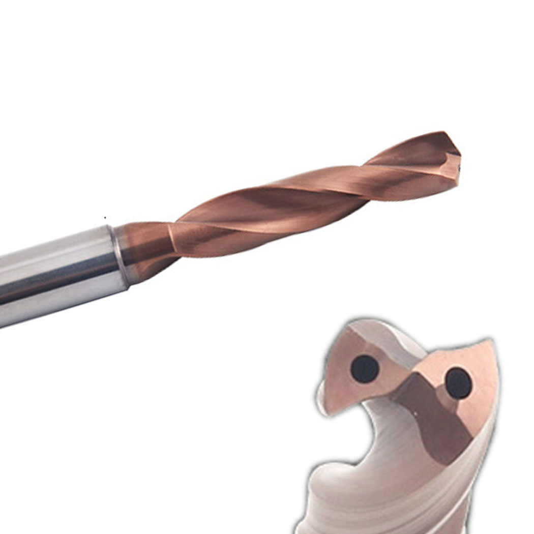 Solid carbide drills are a great option for excellent process security, manufacturing economy, and good hole quality. Internal coolant is always preferred to avoid chip jamming, especially in long chipping materials and when drilling deeper holes Spirial Chip Removal Groove Effective Prevention of Chip Accumulation Excellent Cutting Edge Design Make Tool Machining and Chip Removal More Stable Diameter from 3mm to 16mm Step by 0.1mm are Available