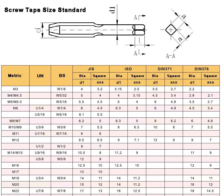 HSS Steel Screw Tap M2-M20 Titanium Coated Spiral Metric Machine Thread Tap Material: High Speed Steel Used to make new threads or re-thread damaged or jammed threads Straight Flute Threads for Blind Hole, Suitable for taping Blind hole,Smooth Chip Discharge with High Quality Cutting; Spiral FLute Threads for Through Hole, well Chip Removal, Easy Tapping, Excellent Cutting Performance. Machining Steel Cast Iron, Aluminum Alloy and other non-heat treater Metal,Hardness less than HRC30.